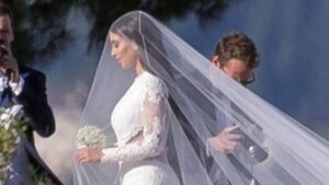Kim Kardashian apostó por un vestido de novia diseñado por Riccardo Tisci cuando estaba al frente de la casa de moda francesa Givenchy, siguiendo la máxima de los diseñadores nupciales.